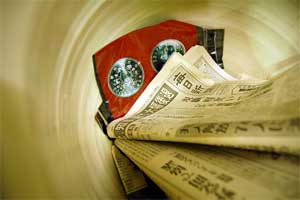 中には新聞と記念硬貨の絵が張った布地らしきものが。