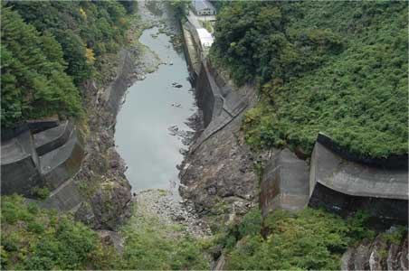 上椎葉ダムは堤体の真ん中を耳川が通っていることもあり