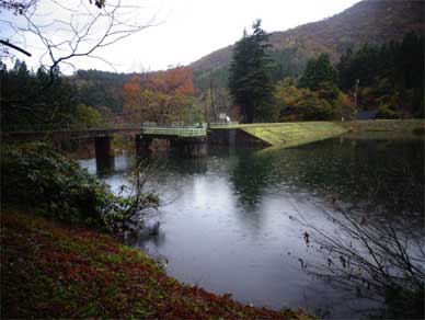 貯水池の真ん中付近までやってきて堤体が見え始めました。