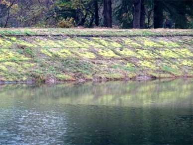 草が…越流面からエプロン全体に草が固まりで生えています。