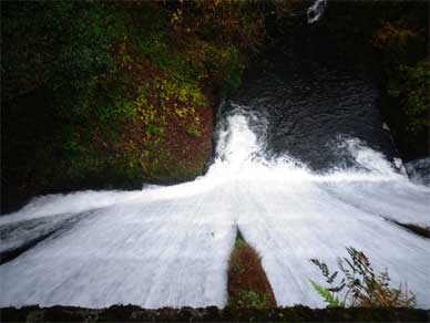 横から見ると中々の瀑布状態ですが水量の割に暴れが大きい。