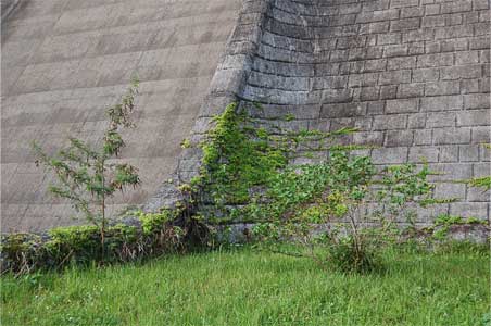 どこのダムでももっと緑化してほしいなーと思いますがコンクリートが見えなくなるのは良くない。