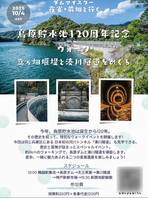 ダムマイスター夜雀・前畑と行く 烏原ダム120周年記念ウォーク 立ヶ畑堰堤と湊川隧道をめぐる