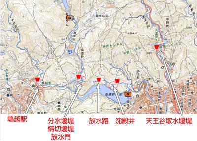 イヤガ谷川と烏原川の水を混ぜないで下流にパスさせるルートは