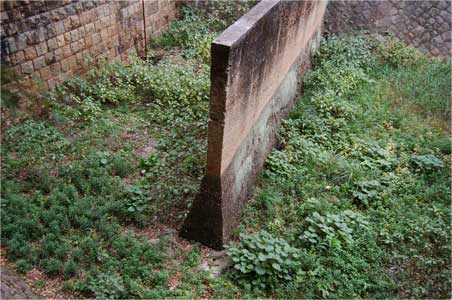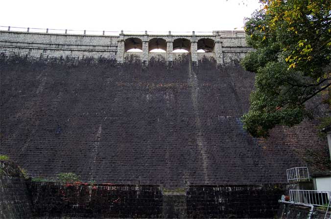 堤体下流に在るこの煉瓦の壁。