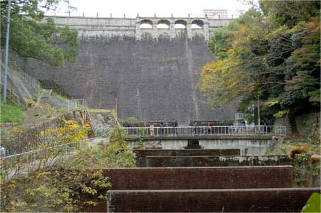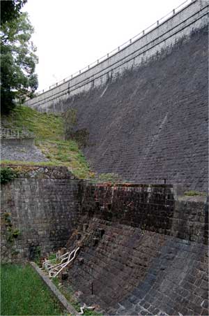 副堰堤から見上げる立ヶ畑ダム。