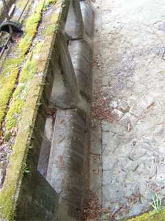 洪水吐き部分のダム湖側は他のアースダムと同じく扇形で広がって