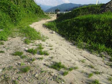 ここで土砂崩れがあったことで水路の方に土砂が押し寄せて来たらしく