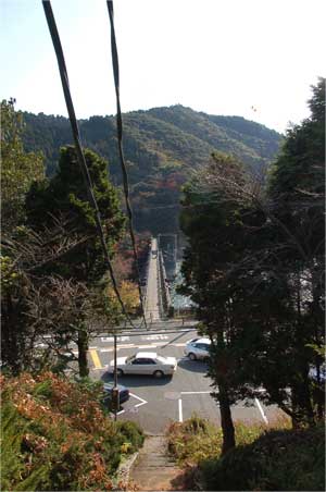 駐車場の上の小山、ダム軸上に何やら建物があります。