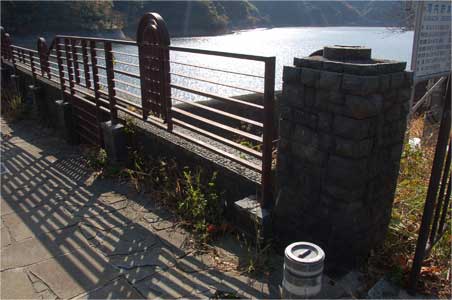 余水吐越流部と晩秋のダム湖。 立派な貯水池です。 でっかいですよ。