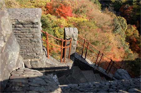 当然のように立入禁止ですが堤体下流に降りる階段も付けられています。