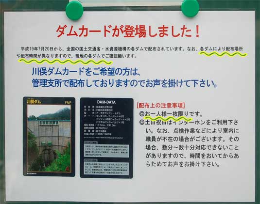 ダムカードは駐車場のゲートが開いていてここにたどり着ける時間でさえあれば