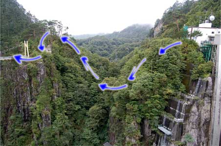 そこからさらに横に進むと“渡らっしゃい吊橋”です。