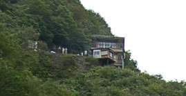 ここからふと見上げると旧県道の展望台にたくさんの人影が見えました。