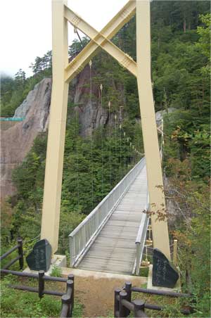鐘を鳴らした後、いそいそと“渡らっしゃい吊橋”へ。