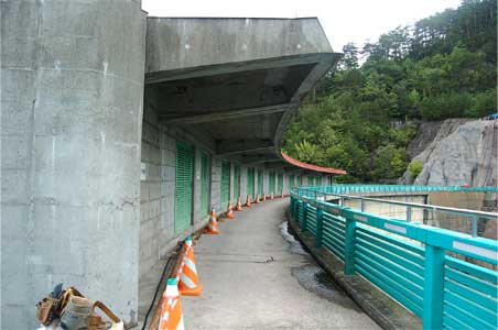 川俣ダムの天端が非常にすっきりしているのはゲート室が屋根つきで
