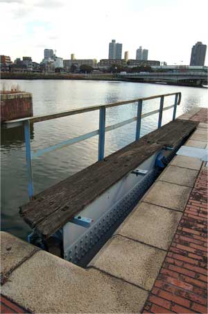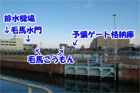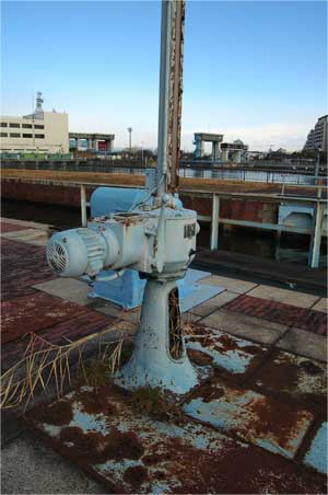 「毛馬閘門の大川側にはゲート門柱が二つ並んでいますが