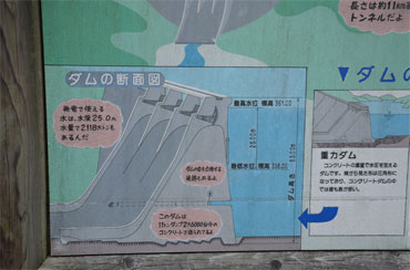 堤体断面図も書かれていてダムを知らない人にもイメージしやすいですね。