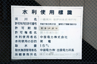 管理所の横にあった水利使用標識。