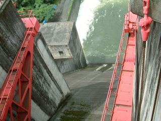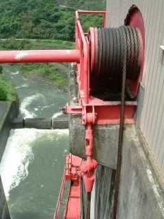ダムの説明板でクレストゲートはこのようにかかれています。