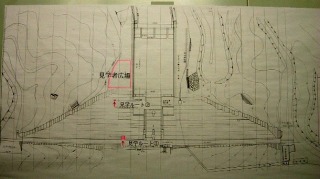 減勢工の横、堤体左岸に見学者広場があるとのこと。