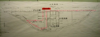 そして堤体正面からの断面図。エレベーターで下りて