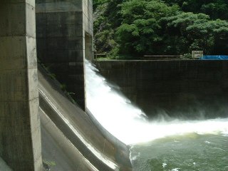 ここのラジアルゲートは弧を描くように動いた後、ダム湖側に