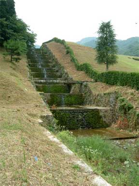 これが大正時代に作られたアースダムのキャスケード洪水吐きです。
