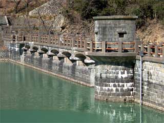 昭和12年に着工され、昭和25年に完成した成相池堰堤です。