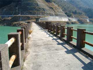 左岸より見る成相池堰堤です。