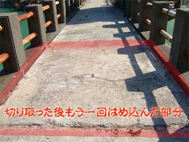 コンクリートカッターでそのまま切り取って持ち上げて