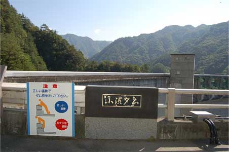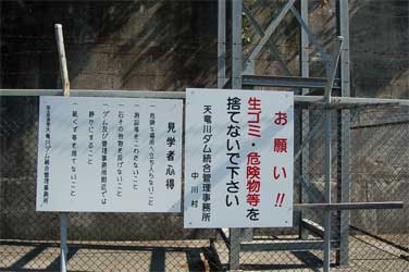 堤体にやってきました。小渋ダムの銘板のよこにまたまた注意書き。