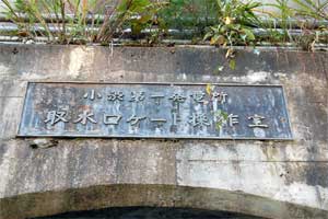 締め切られているトンネルの上には『小渋第一発電所 取水口ゲート操作室』の文字。