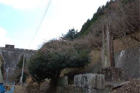 堤体にどんどん近付いて行くと立派な石碑です。