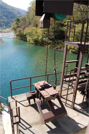右岸に在った流木を引き上げるためのクレーンです。