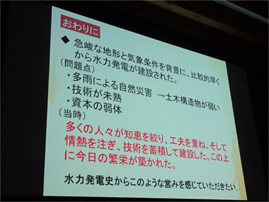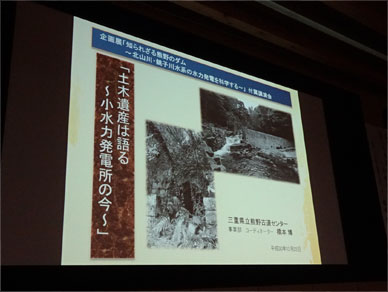 今回の企画展の特別講演「土木遺産は語る 小水力発電の今」。