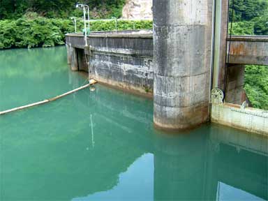 右岸にある管理所のすぐ裏に発電用の取水口です。