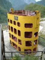 同じく建設中に働き続けたコンクリートバケットが並べてあります。