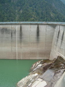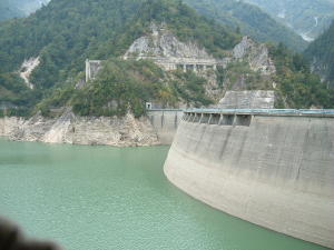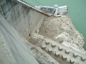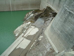 少し堤体側を見ると、先は塞がれていますがトロッコのレールの跡が