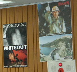 壁には「ホワイトアウト」と「黒部の太陽」のポスター。