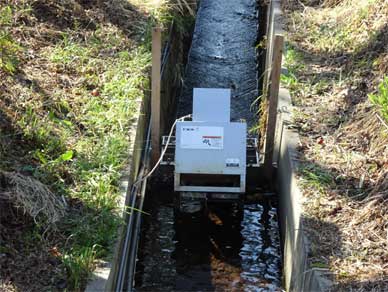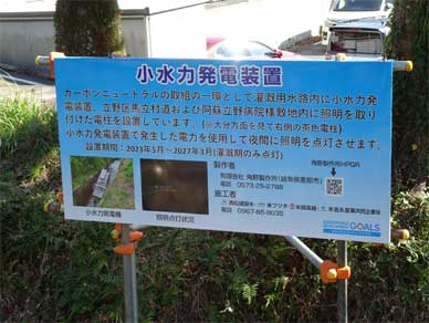 この小さな螺旋水車で街路灯の照明をまかなっています。