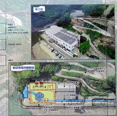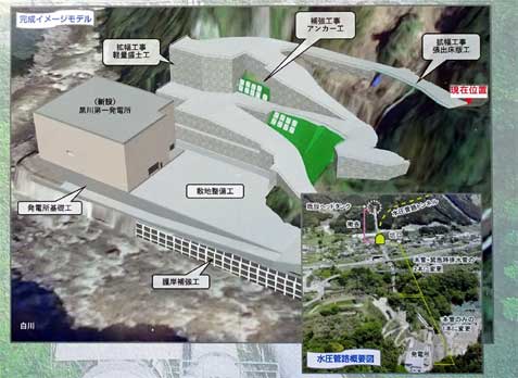 この写真を見て最初に思ったのは、下流にある黒川第一発電所工事現場は