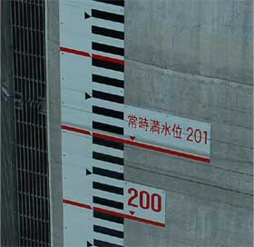 取水塔の横っ腹に水位標があったのでよく見ると
