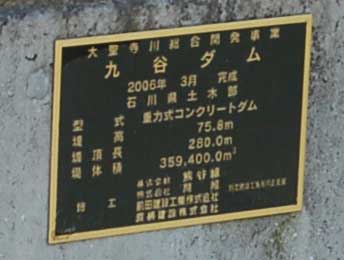 九谷ダムのスペックが書かれたプレートでした。