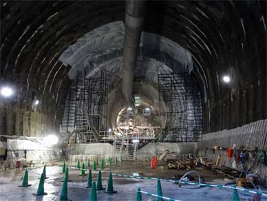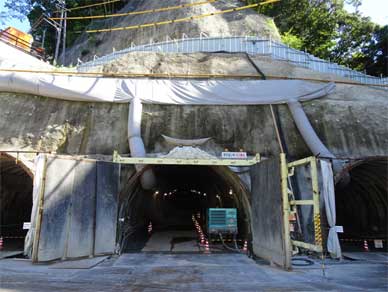 今は覆工コンクリートの隙間から山にセメントミルクを注入する