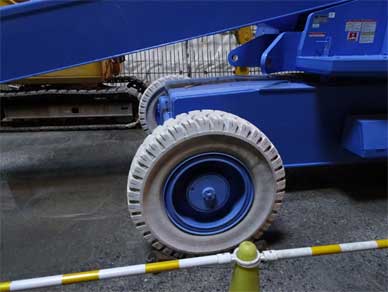 「普通のタイヤだとどうしてもコンクリートに跡がつきますので」