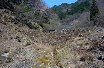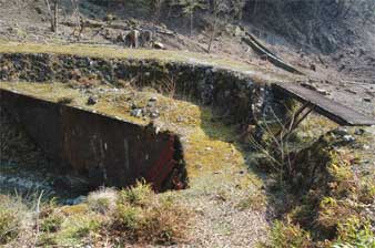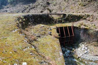 この部分から水はコンクリートのトンネルを通って下流側に出ています。