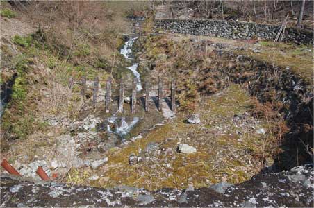 そして水が一番流れてくるところには鉄柵タイプの流木止が設置されていました。