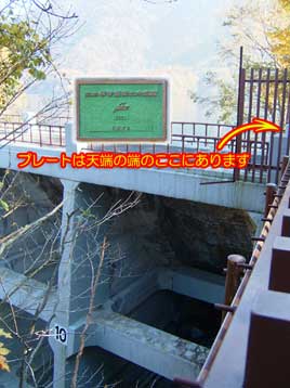 天端の端っこのダム湖側の柱にプレートははめ込まれています。