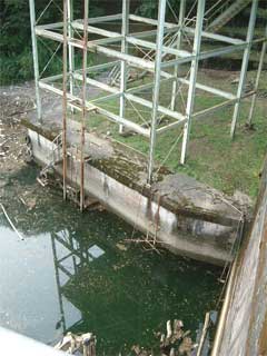 先程堤体を見下ろしていた展望台がある右岸のクレーン橋脚跡です。